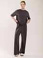Широкие брюки из эластичного футера 2-х нитки, изнанка петелька без утепления. Эластичный пояс-резинка без завязок не сковывает движений и не натирает кожу. Карманы в данной модели отсутствуют. Средняя посадка подчеркивает достоинства фигуры и скрывает недостатки. Декоративные прострочки по всей длине изделия.