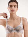 Бюстгальтер каплевидный мягкий на косточках выполнен из деликатной вышивки на сетке в сочетании с шелковистой микрофиброй. Без уплотнения в чашках имеет достаточно широкий размерный ряд. Данная модель на стане, обеспечивает прекрасную поддержку груди, подходит для поклонниц естественного силуэта. Передняя деталь декорирована вырезом и бантиком с подвеской. Бретели регулируются на спинке, не отстегиваются. Бюстгальтер застегивается сзади на крючки-петли. Данный бюстгальтер специально с учетом особенностей обладательниц пышных форм.