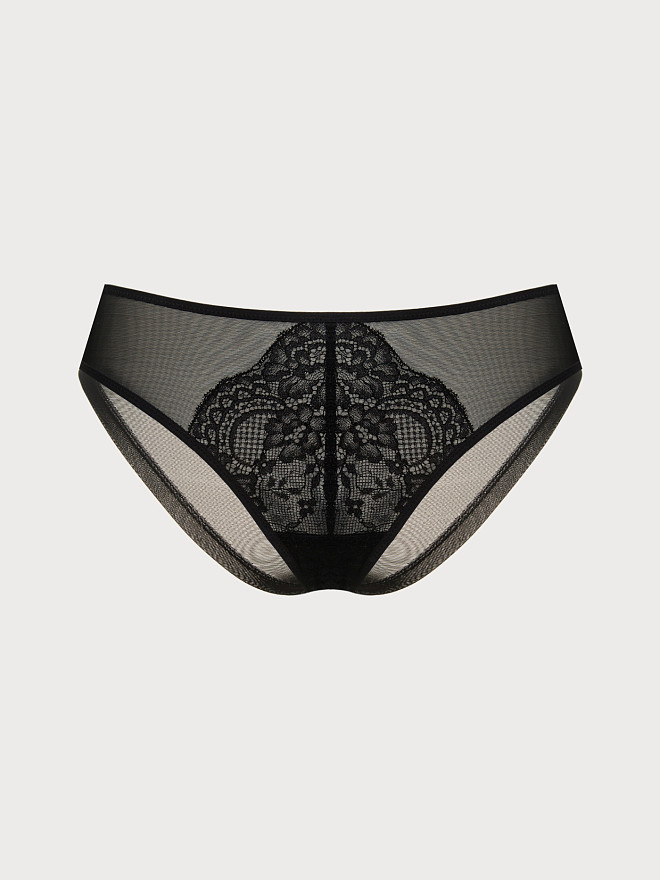 Мягкий бюстгальтер с косточками выполнен из деликатного кружева в сочетании с эластичной сеткой, декорирована стропами, фурнитурой серебристого цвета. Данная модель на стане обеспечивает прекрасную поддержку груди, подходит для поклонниц естественного силуэта. Чашки без уплотнения. Бретели регулируются на спинке, не отстегиваются. Бюстгальтер застегивается сзади на крючки-петли.