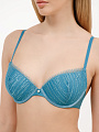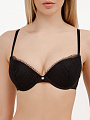 Бюстгальтер пуш-ап на косточках c уплотнением в чашках выполнен из деликатного кружева с ресничками в сочетании с мягкой микрофиброй, декорирован подвеской в форме сердечка. Данная конструкция отлично поддерживает, собирает и визуально увеличивает грудь, а также обеспечивает прекрасную посадку. Бретели регулируются на спинке, не отстегиваются. Бюстгальтер застегивается сзади на крючки-петли.