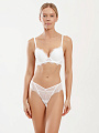 Бюстгальтер пуш-ап на стане с косточками выполнен из кружева с «ресничками» в сочетании с эластичной сеткой. Бюстгальтер поддерживает, собирает и визуально увеличивает грудь, а также обеспечивает прекрасную посадку. Бретели регулируются на спинке. Застегивается бюстгальтер сзади на крючки-петли. Модель сочетает элегантность и поддержку, идеально подходит для особых случаев. Коллекция Claudie является коллаборацией бренда Дефиле с Дикой Орхидеей.