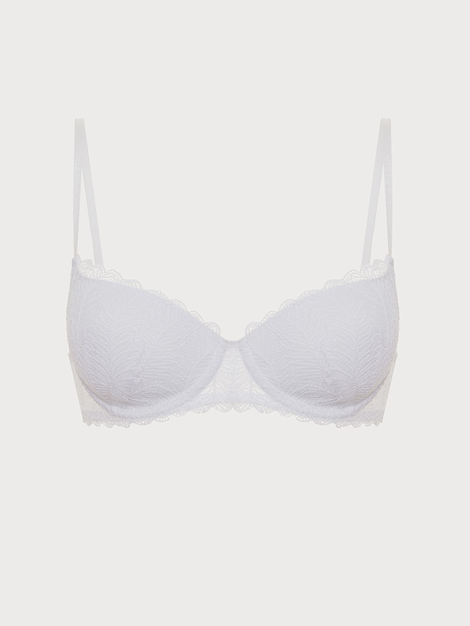 Бюстгальтер тишот с выполнен из кружева с эффектом «макраме». Данная модель бюстгальтера тишот для пышной груди идеально подчеркивает форму, имеет небольшой слой наполнителя. Такой бюстгальтер подарит чувство комфорта на весь день.