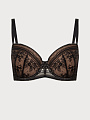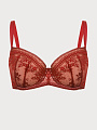 Бюстгальтер с легким уплотнением чашек на стане из деликатного кружева c цветочно-геометричным рисунком. Данная модель на косточках обеспечивает прекрасную поддержку груди и разработана специально с учетом особенностей обладательниц пышных форм. Бретели регулируются на спинке, не отстегиваются. Бюстгальтер застегивается сзади на крючки-петли.