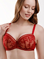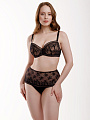 Бюстгальтер с легким уплотнением чашек на стане из деликатного кружева c цветочно-геометричным рисунком. Данная модель на косточках обеспечивает прекрасную поддержку груди и разработана специально с учетом особенностей обладательниц пышных форм. Бретели регулируются на спинке, не отстегиваются. Бюстгальтер застегивается сзади на крючки-петли.