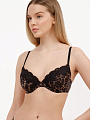 Бюстгальтер с легким уплотнением чашек выполнен из принтованной микрофибры с леопардовым рисунком в сочетании с узким кружевом. Микрофибра имеет деликатный блеск и шелковистость. Данная модель на косточках обеспечивает прекрасную поддержку груди и разработана специально с учетом особенностей обладательниц пышных форм. Бретели регулируются на спинке, не отстегиваются. Бюстгальтер застегивается сзади на крючки-петли.