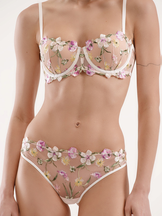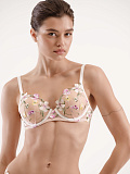 Бюстгальтер t-shirt на стане, выполнен из деликатной цветочной вышивки на сетке в сочетании с эластичной сеткой. Комфортная посадка благодаря легкому и мягкому наполнителю чашки. Бретели регулируются на спинке. Застегивается бюстгальтер сзади на крючки-петли. Данный бюстгальтер специально с учетом особенностей обладательниц пышных форм.