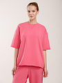 Футболка oversize из футера 2-х нитки, изнанка петелька без утепления. Классический круглый вырез горловины. Декоративная прострочка V-образной формы. Удлиненные рукава со спущенной линией плеч. Необработанные края рукавов и нижний срез футболки.