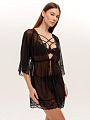 Пеньюар с рукавами 3/4 выполнен из эластичной сетки в сочетании с цветочным кружевом. Внутренняя шнуровка и пояс на талии. Крой свободный. Отличное дополнение к сексуальному образу.
