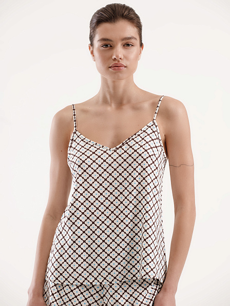 Сорочка из тканой вискозы. V-образный вырез горловины. Узкие регулируемые бретели. Стандартный крой. Коллекция из 100% тканной вискозы с интересным принтом. Свободные силуэты и комфортный крой не сковывают движения. Тканная вискоза хорошо пропускает воздух и почти не ощущается на теле.