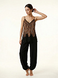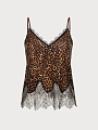 Майка-топ с леопардовым принтом, украшенная нежным кружевом и изысканной инкрустацией!