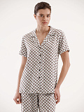 Рубашка с короткими рукавами, воротником и пуговичной застежкой по центру. Коллекция из 100% тканной вискозы с интересным принтом. Свободные силуэты и комфортный крой не сковывают движения. Тканная вискоза хорошо пропускает воздух и почти не ощущается на теле. Комфортная пижама для сна и отдыха.