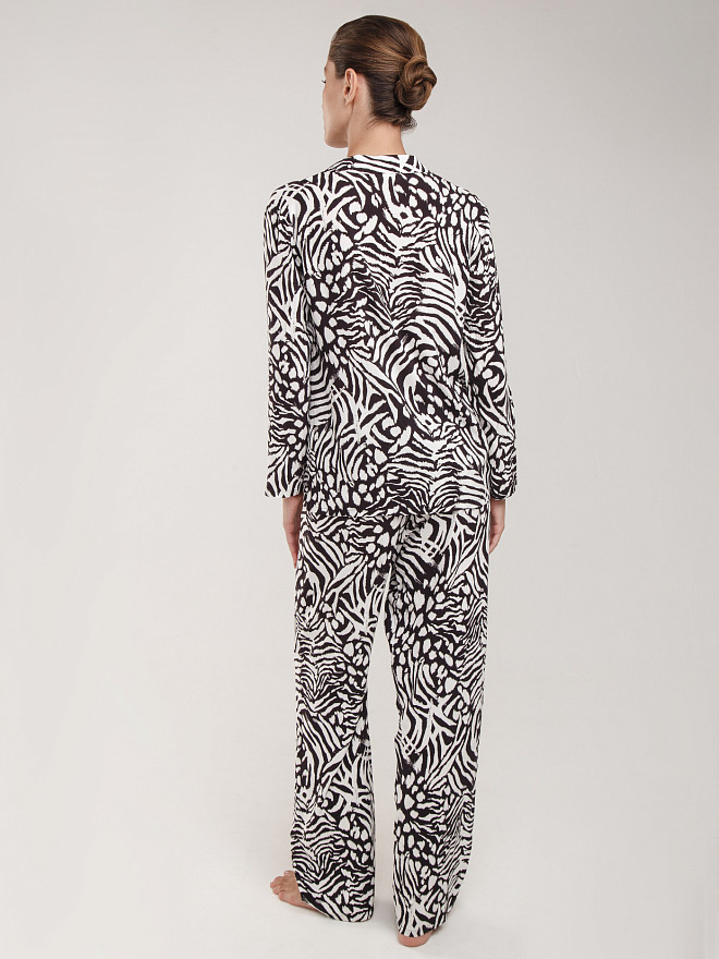 Рубашка с длинными рукавами, воротником, карманом и пуговичной застежкой по центру. Модель из фланели с принтом в елочку. Комфортная пижама для сна и отдыха.