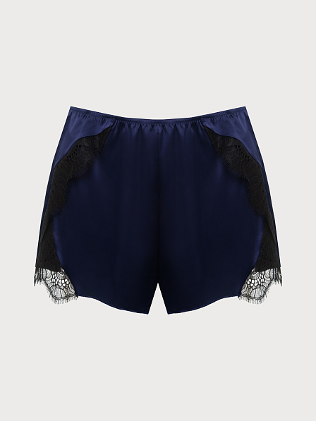 Шорты из струящегося сатина в сочетании с эластичным кружевом имеют деликатный блеск. Крой свободный. Стандартная посадка. Эластичный пояс-резинка не сковывает движений и не натирает кожу.