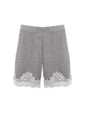 Шорты из мягкой и приятной к телу вискозы в рубчик. Низ изделия с инкрустацией кружевом. Свободный силуэт и комфортный крой не сковывают движения. Стандартная посадка. Эластичный пояс-резинка без завязок. Карманы в данной модели отсутствуют.