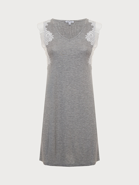 Сорочка из мягкой вискозы в рубчик без рукавов. V-образный вырез горловины с инкрустацией кружевом по пройме. Инкрустация технически более сложно исполнима и используется в премиальных брендах и изделиях. Стандартный крой.