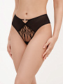 Трусы хипстер высокой посадки выполнены из деликатной сетки в сочетании с вышивкой. Средний вырез бедра. Ластовица из хлопка. Шов сзади обеспечивает оптимальную посадку. Передняя часть трусов декорирована V-образным вырезом с ремешком из тесьмы и аксессуаром со стразами.