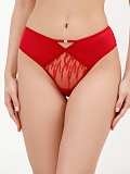 Трусы хипстер высокой посадки выполнены из деликатной сетки в сочетании с вышивкой. Средний вырез бедра. Ластовица из хлопка. Шов сзади обеспечивает оптимальную посадку. Передняя часть трусов декорирована V-образным вырезом с ремешком из тесьмы и аксессуаром со стразами.