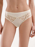 Трусы хипстер средней посадки, выполнены из деликатной вышивки на сетке в сочетании с микрофиброй. Микрофибра имеет деликатный блеск и шелковистость. Задняя деталь декорирована каплеобразным вырезом и бантиком. Средний вырез бедра. Ластовица из хлопка. Шов сзади обеспечивает оптимальную посадку. Отсутствие лент по ножкам дает дополнительный комфорт.