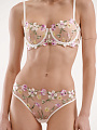 Трусы хипстер средней посадки, выполнены из деликатной цветочной вышивки на сетке. Средний вырез бедра. Ластовица из хлопка. Шов сзади обеспечивает оптимальную посадку.