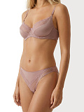Трусы стринг классической средней посадки выполнены из деликатного кружева в сочетании с мягкой микрофиброй. Средний вырез бедра. Ластовица из хлопка.