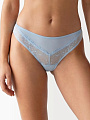 Трусы стринг классической средней посадки, выполнены из деликатного кружева в сочетании с мягкой микрофиброй. Средний вырез бедра. Ластовица из хлопка.