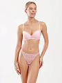 Трусы стринг классической средней посадки, выполнены из деликатного кружева "суфле". Средний вырез бедра. Колечки на передней детали делают модель более изящной. Ластовица из хлопка.