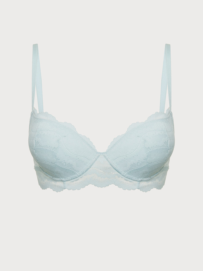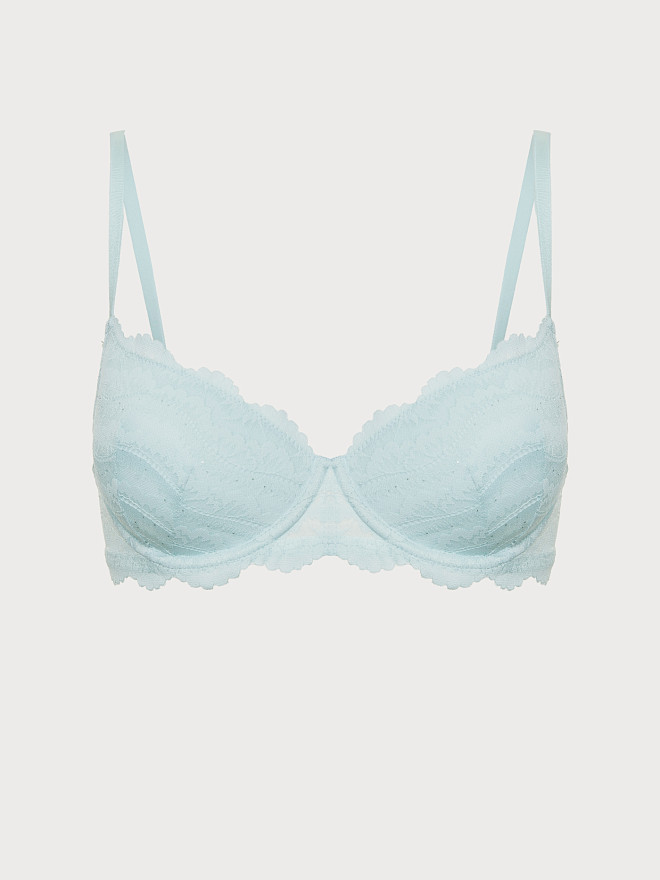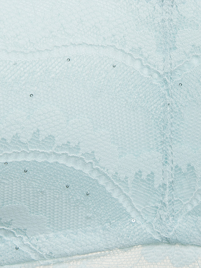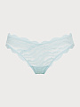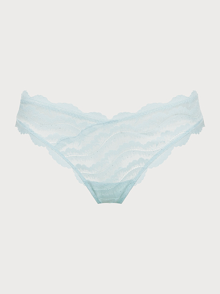 Трусы стринг классической средней посадки с V-образным вырезом, выполнены из деликатного кружева с вкраплением маленьких пайеток, что придает дизайну индивидуальность и деликатный блеск.. Средний вырез бедра. Ластовица из хлопка. Шов сзади обеспечивает оптимальную посадку.